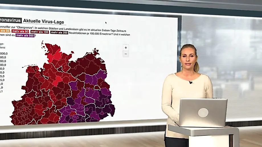 29.11.2021, 10:55 UhrWie hat sich die Zahl der täglichen Neuinfektionen entwickelt? Wie ist die Lage auf den Intensivstationen? Mit aktuellen Fakten zum Infektionsgeschehen ordnen die ntv-Moderatorinnen Anne-Kathrin Cyrus und Nele Balgo zusammen mit dem Epidemiologen Prof. Timo Ulrichs die Corona-Lage in Deutschland und der Welt ein.