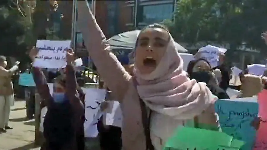 09.09.2021, 16:00 UhrFrauen in Afghanistan gehen lautstark auf die Straße. Der Grund: Die Taliban schlagen schon kurz nach der Aufnahme ihrer Regierungsarbeit einen harten Kurs gegen Meinungsfreiheit und Frauenrechte ein. Für Frauen werden weitreichende Verbote erlassen. Ihre Proteste werden mit Härte niedergeschlagen.