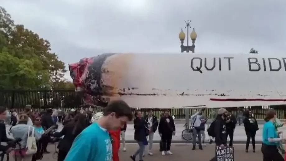 Für mehr Begnadigungen durch BidenAktivisten tragen riesigen Joint vor das Weiße Haus