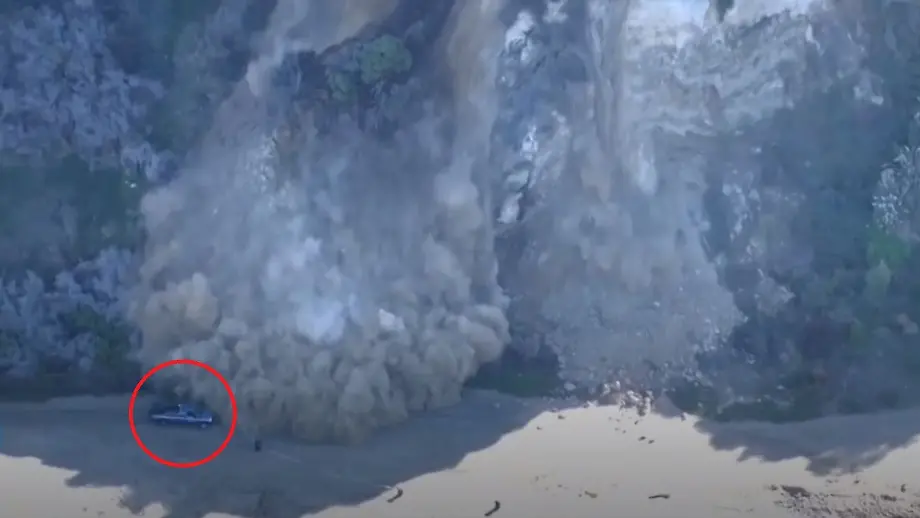 10.12.2022, 13:21 UhrAm Rat Beach im US-Bundesstaat Kalifornien kommt es an einem Steilhang zu einem Erdrutsch. Als ein Wartungsmitarbeiter mit seinem Truck an die Abbruchstelle fährt, um sie zu untersuchen, folgt ein weiterer großer Rutsch. Geröllmassen begraben den Mann und sein Auto - er bleibt aber unverletzt.