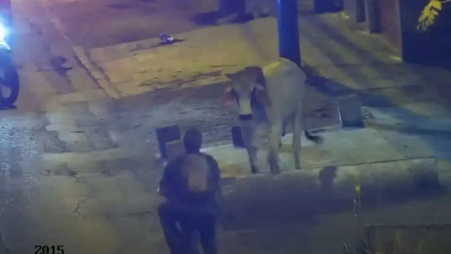 04.07.2024, 14:20 UhrSchreck im Abendverkehr: Im peruanischen Santa Anita blockiert ein ausgebüxter Stier die Straße. Videos zeigen, wie das ängstliche Tier immer wieder der Polizei entwischt und einen Radfahrer auf die Hörner nimmt. Der Angegriffene kommt trotz der Wucht des Aufpralls mit einem Schrecken davon.