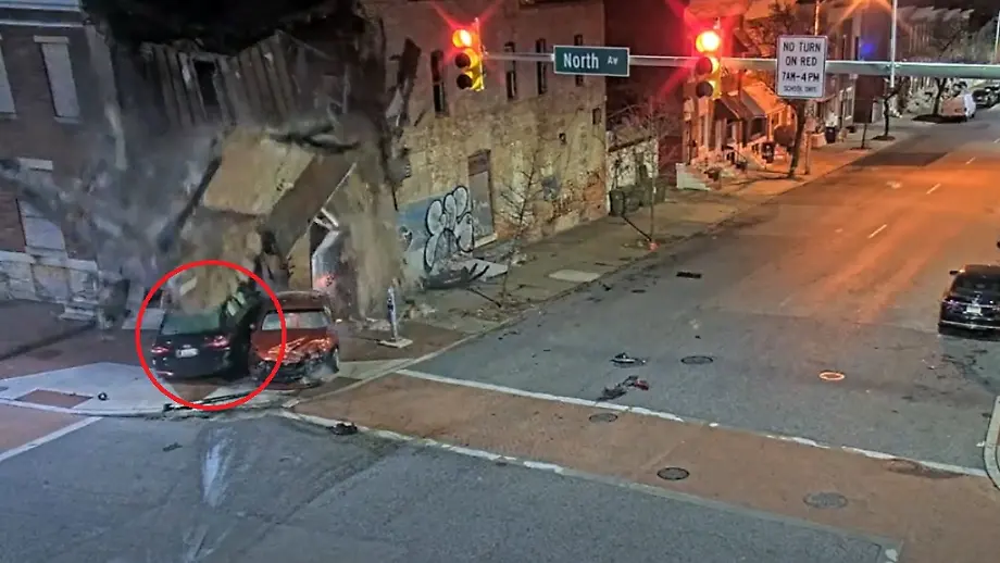 03.03.2023, 16:18 UhrDie Polizei jagt in der US-Metropole Baltimore einen Verdächtigen. Auf der Flucht rammt dieser mit einem gestohlenen Auto erst ein anderes Fahrzeug und kracht dann in ein Haus, das über ihm zusammenbricht. Ein Fußgänger kommt bei dem Vorfall ums Leben, mehrere Personen werden verletzt.