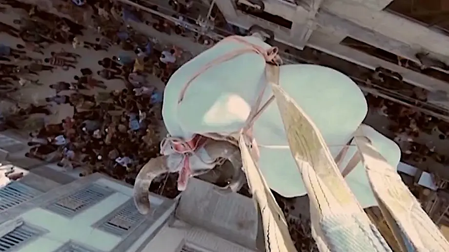 12.07.2021, 20:27 UhrEs ist ein bizarres Spektakel, wenn Bauer Syed Ejaz Ahmad seine Kühe zum Schlachten abtransportiert. Denn sein Mastbetrieb befindet sich mitten in der pakistanischen Stadt Karatschi auf dem Dach. Für die Kühe ist die Prozedur eine Qual.