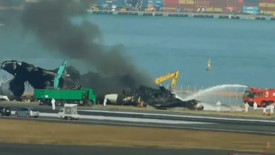 05.01.2024, 13:06 UhrNach der tödlichen Kollision eines Airbus' mit einer Maschine der Küstenwache auf dem Tokioter Flughafen Haneda stehen genauere Untersuchungen des A350 an. Dafür soll das ausgebrannte Wrack zerlegt und in eine Lagerhalle gebracht werden. Bei der Bergung muss wieder die Feuerwehr eingreifen.