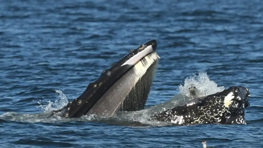 Ausflügler halten Moment festBeim Lunge Feeding: Wal verschluckt beinahe Robbe