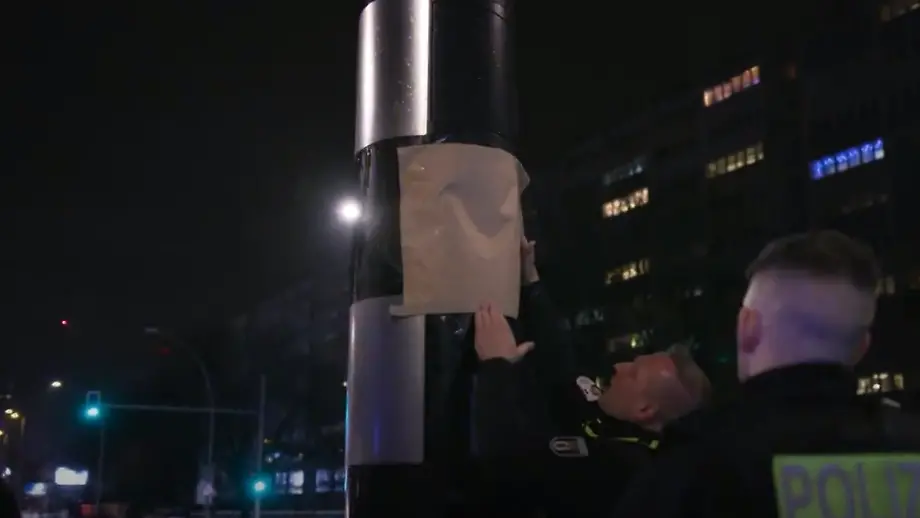 Unüblicher EinsatzBerliner Polizei klebt Blitzer an Hauptstraße ab