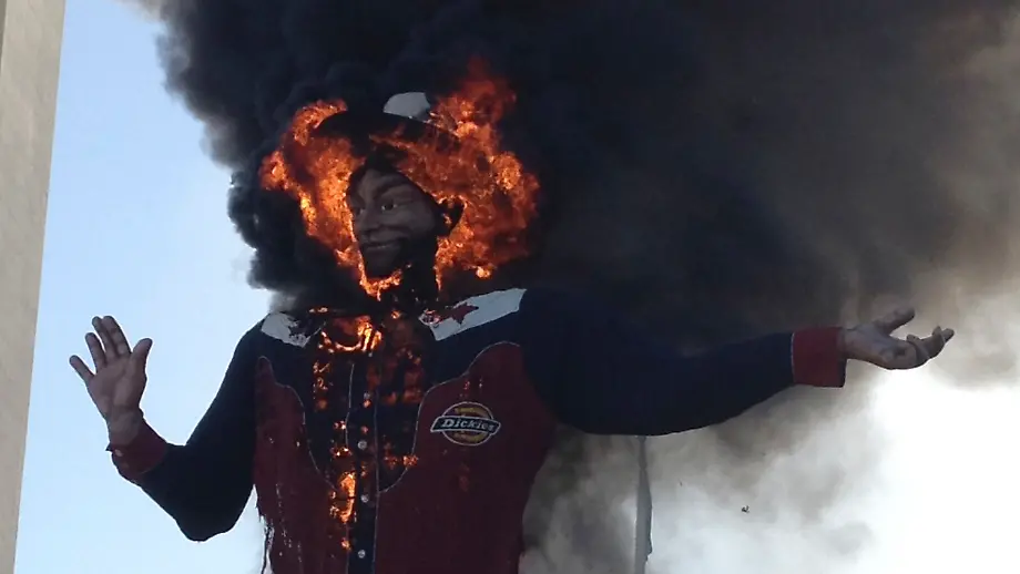 Riesen-Cowboy fängt Feuer"Big Tex" brennt