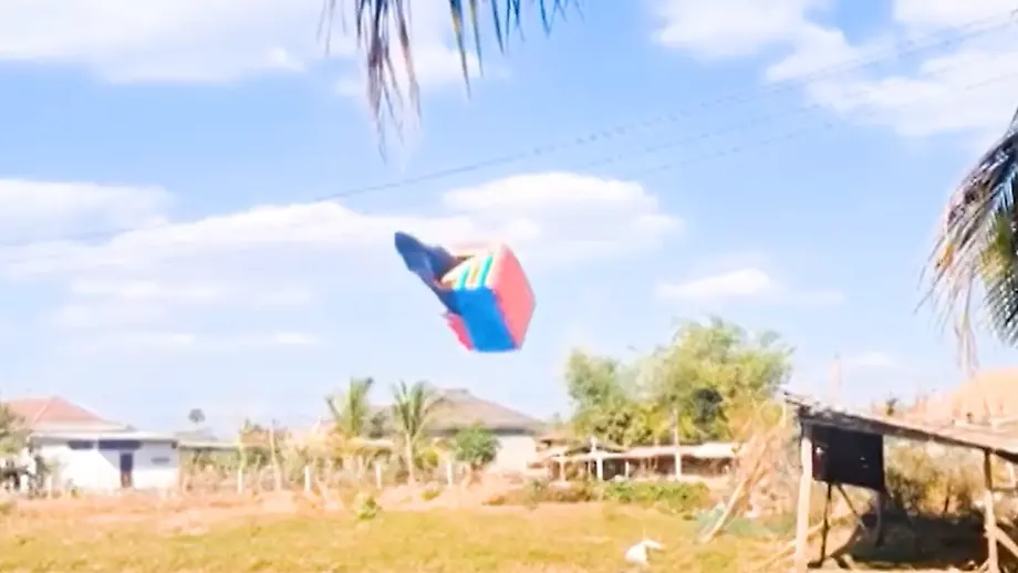 02.02.2026, 21:47 UhrSchockmoment im laotischen Savannakhet: Auf einem Jahrmarkt kommt starker Wind auf, der eine - glücklicherweise leere - Hüpfburg losreißt und in die Luft hebt. Augenzeugen filmen den unfreiwilligen Flug.