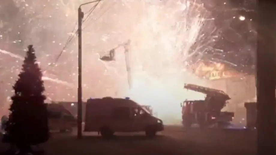 07.12.2020, 16:59 UhrBei einem Brand im russischen Rostow gibt es für die Anwohner eine gewaltige Feuerwerksshow. Die im Gebäude gelagerte Feuerwerkskörper entzünden sich und tauchen die umliegenden Häuser ausdauernd in buntes Licht. Zu Schaden kommt glücklicherweise niemand.