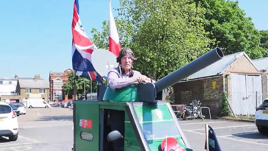 Kaum zu glauben, aber wahrBrite rollt in selbst gebautem "Panzer"-Rollstuhl herum