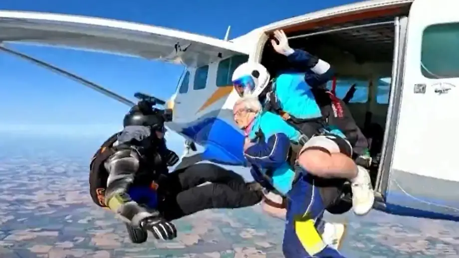 27.08.2024, 13:00 UhrAuch noch im hohen Alter sucht die Britin Manette Baillie nach Adrenalinkicks. Zu ihrem 102. Geburtstag schenkt sie sich selbst einen Fallschirmsprung aus 2000 Metern Höhe. Damit erfüllt sie sich nicht nur einen Lebenstraum, sondern stellt auch noch einen Rekord in Großbritannien auf.