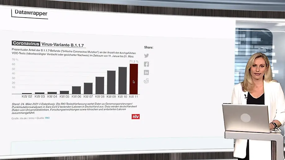 27.03.2021, 09:11 UhrWie hat sich die Zahl der täglichen Neuinfektionen entwickelt? Wie ist die Lage auf den Intensivstationen? Mit aktuellen Fakten zum Infektionsgeschehen ordnet das ntv-Moderatorenteam Anne-Kathrin Cyrus und Doro Steitz mit dem Epidemiologen Timo Ulrichs die Corona-Lage in Deutschland und der Welt ein.