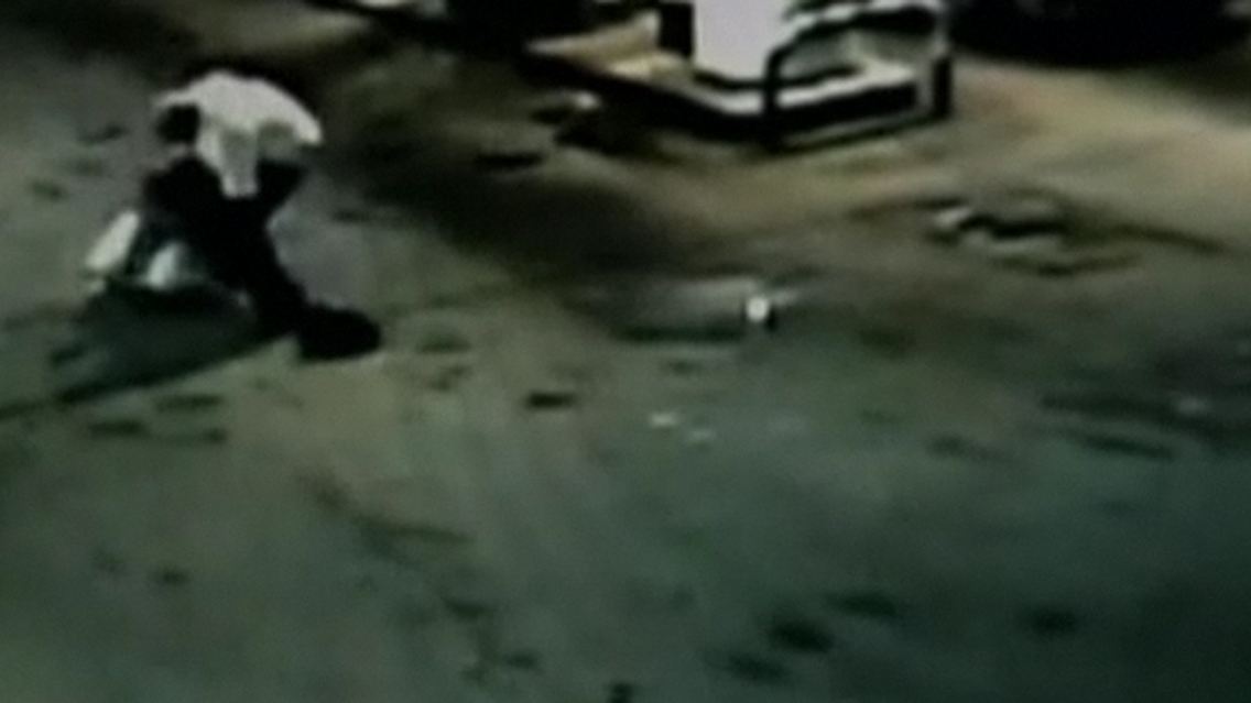 Überwachungskamera filmt mit Brutaler Räuber überfällt junge Frau