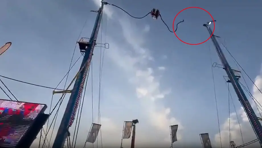Schockmoment in Sevilla gefilmtBungee-Seil von Kirmes-Schleuderkugel reißt im Flug