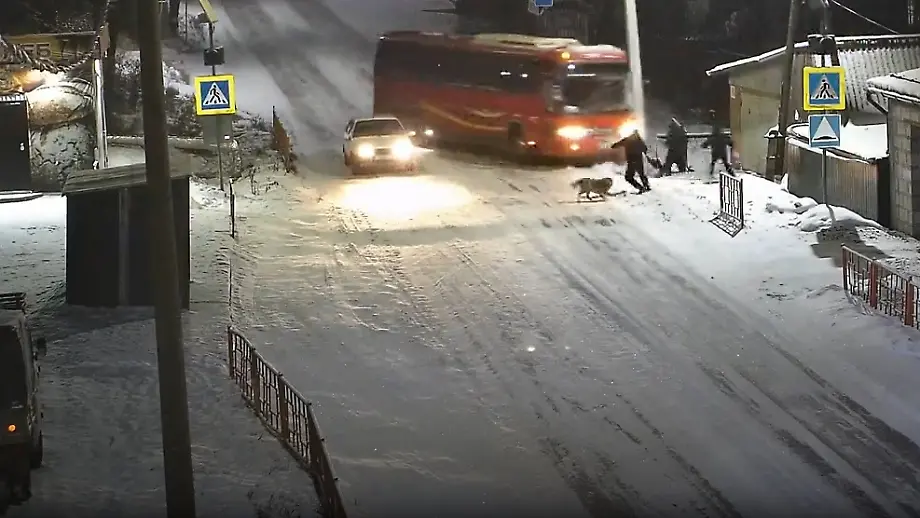 09.11.2025, 13:01 UhrIn Ust-Kut im Osten Russlands kommt ein Bus bei Schnee von der Fahrbahn ab. Das mit Fabrikarbeitern besetzte Fahrzeug rast erst in eine Menschengruppe am Straßenrand und reißt dann mehrere Strommasten nieder. Da die Fußgänger im letzten Moment ausweichen können, wird bei dem Vorfall niemand verletzt.