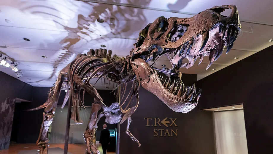 17.09.2020, 19:09 UhrDino-Fans aufgepasst: Christie's hat ein waschechtes Skelett eines Tyrannosaurus Rex im Angebot. Der "Stan" getaufte Dino ist kein gewöhnliches Exemplar. Das Auktionshaus erhofft sich einen stattlichen Erlös aufgrund der besonderen Krankengeschichte des riesigen Jägers.