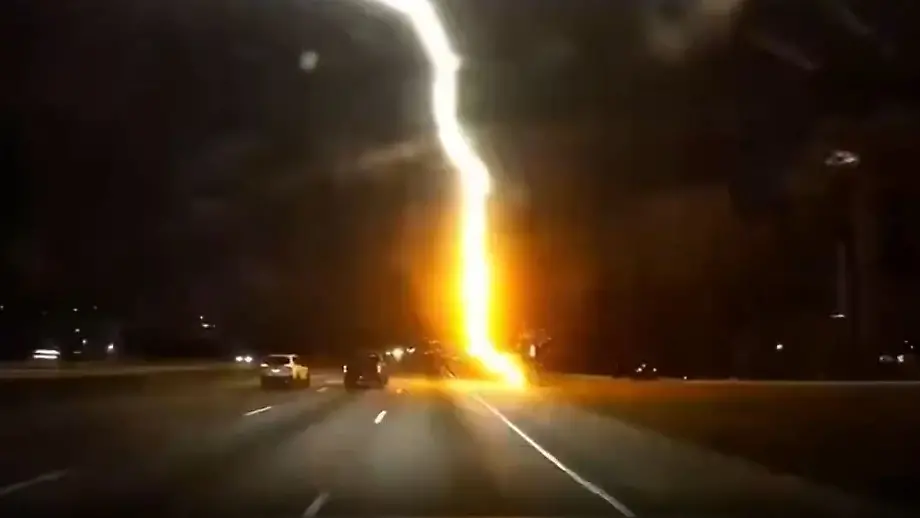 Wetterphänomen hautnahDashcam filmt Blitzeinschlag direkt vor Auto