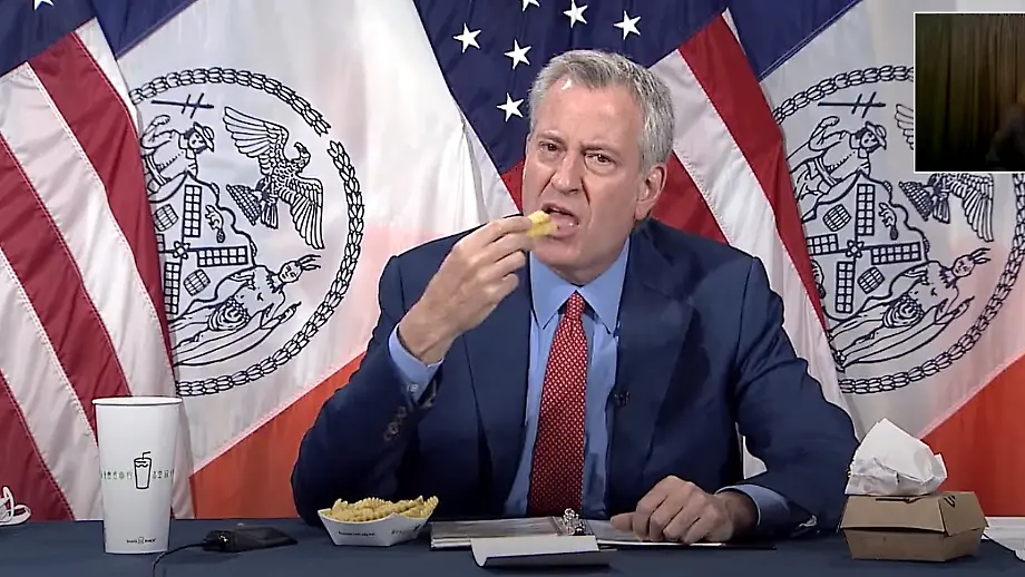 Gratis-Burger nach ImmunisierungDe Blasio wirbt Fast Food essend für Covid-Impfung