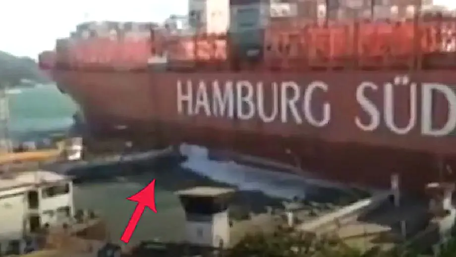 Frachter außer KontrolleDeutscher Containerriese rammt Kai und zermalmt Anleger