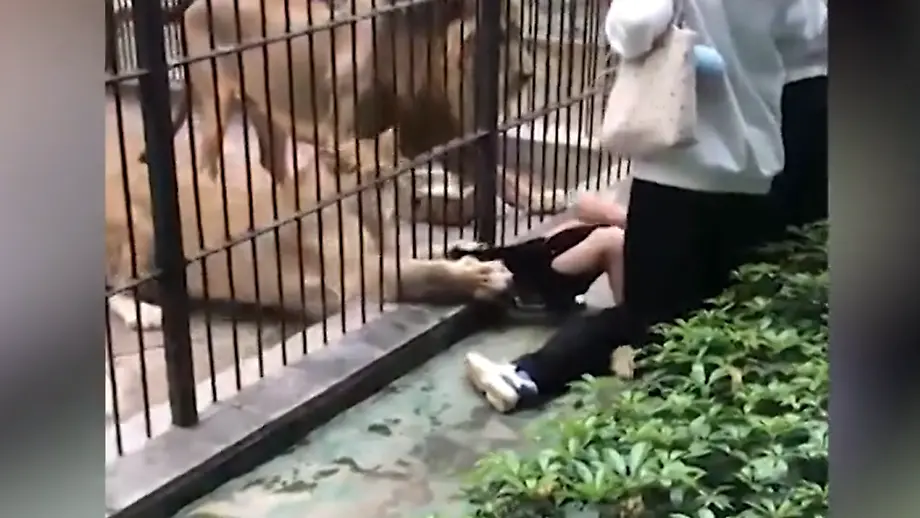 Wärter in China schreitet einDramatische Szene in Zoo: Löwin packt Mädchen am Bein