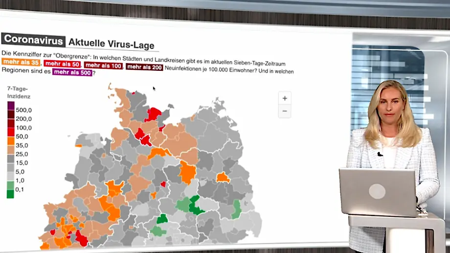 09.08.2021, 11:40 UhrWie hat sich die Zahl der täglichen Neuinfektionen entwickelt? Wie ist die Lage auf den Intensivstationen? Mit aktuellen Fakten zum Infektionsgeschehen ordnen das ntv-Moderatorenteam Anne-Kathrin Cyrus und Katrin Neumann zusammen mit der Immunologin Prof. Christine Falk die Corona-Lage in Deutschland und der Welt ein.