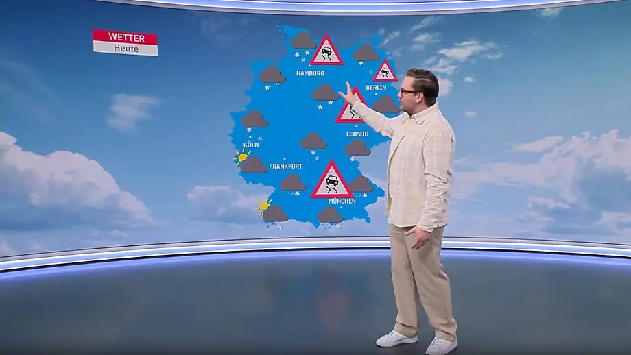 26.01.2026, 09:32 UhrÜber Deutschland mischt sich feuchte und milde Tiefdruckluft vom Mittelmeer mit kalter Luft. Die Folge: verbreiteter Schneefall und dazwischen immer wieder Eisregen. Der zieht sich zwar langsam etwas zurück, den Tag über kommt es aber in mehreren Regionen weiter zu gefährlicher Glätte.