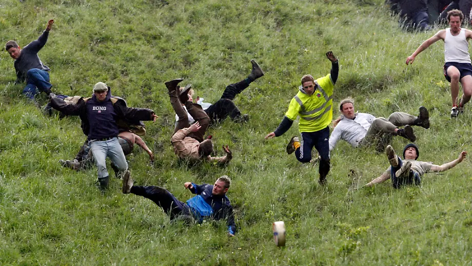 Kurioser Wettbewerb auf der InselEngländer jagen die Käse-Rolle