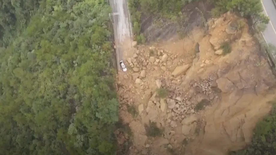 Nach sintflutartigen RegenfällenErdrutsch in China blockiert Straße in Sekunden