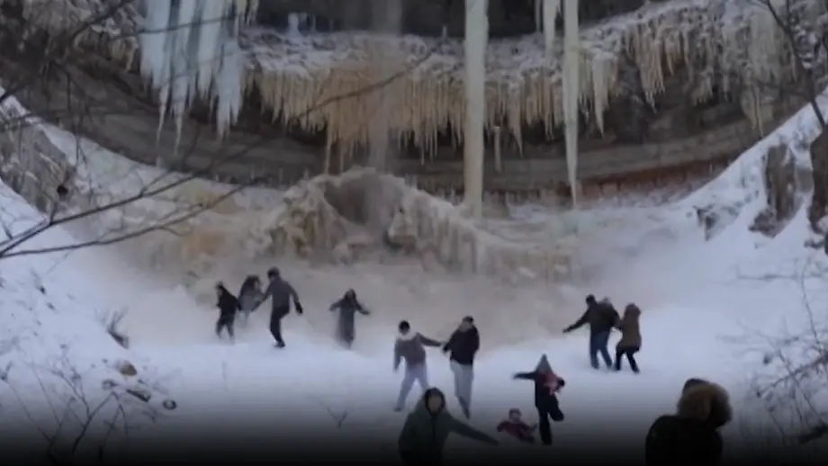 Eismassen stürzen in die TiefeGefrorener Wasserfall bricht über Touristen ab