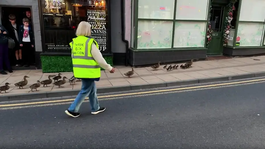 10.08.2025, 13:14 UhrIm englischen Thirsk watscheln allabendlich einige Enten vom Fluss hinauf in die Stadt, bis sie schließlich vor einem Pub zum Stehen kommen. Warum, das weiß niemand. Dennoch sorgen die Bürger der Stadt ehrenamtlich für die Sicherheit auf der gefiederten Einwohner.