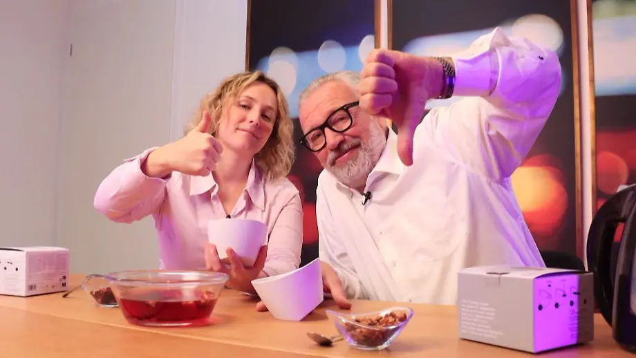 25.12.2025, 15:17 UhrProduktexperte Heiko Mehmert testet mit Reporterin Sonja Bouzouf vier viral gehypte Haushaltsgadgets. Halten die smarte Wärmflasche, die Teetasse mit Filtersystem, der chemische Rohrreiniger und der automatische Schäler, was die Werbung verspricht - und überzeugen die Produkte im Alltag wirklich?