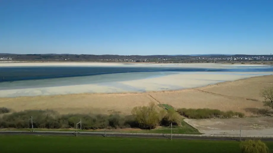 Niedrigster Pegel seit 40 JahrenDrohnen filmen extreme Trockenheit am Bodensee