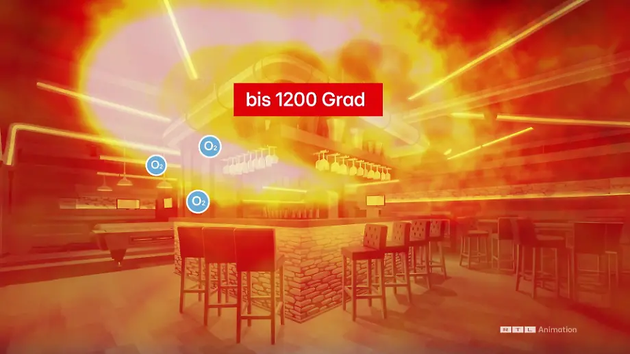 Temperatur stieg auf über 1000 GradAnimation zeigt, wie Bar zur Feuer-Hölle wurde