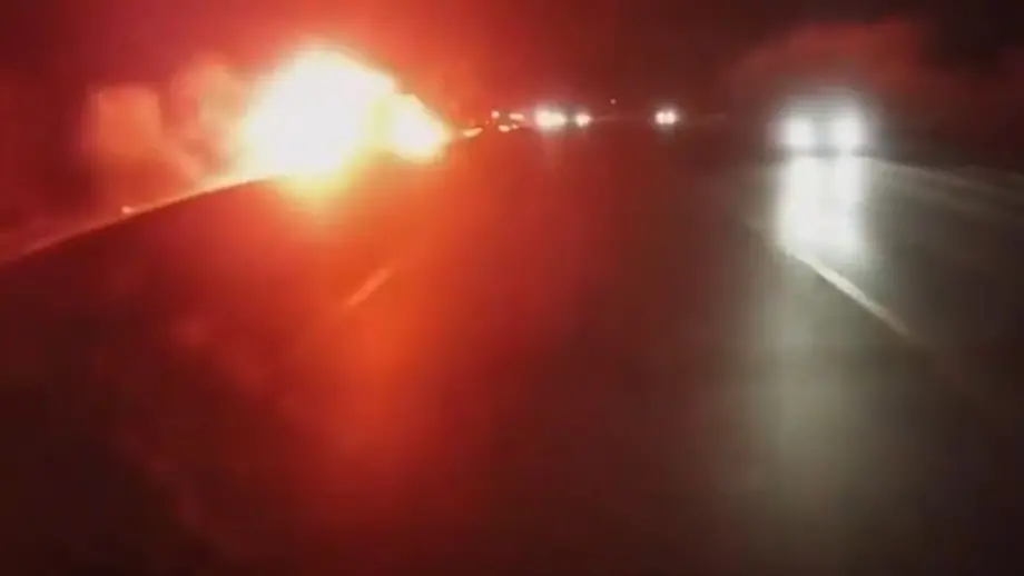 Sechs Einsatzwagen müssen löschenFeuerball umhüllt LKW nach Autobahn-Unfall bei London