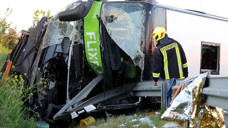 Ein Toter, Dutzende VerletzteFlixbus überschlägt sich auf A9 nahe Leipzig