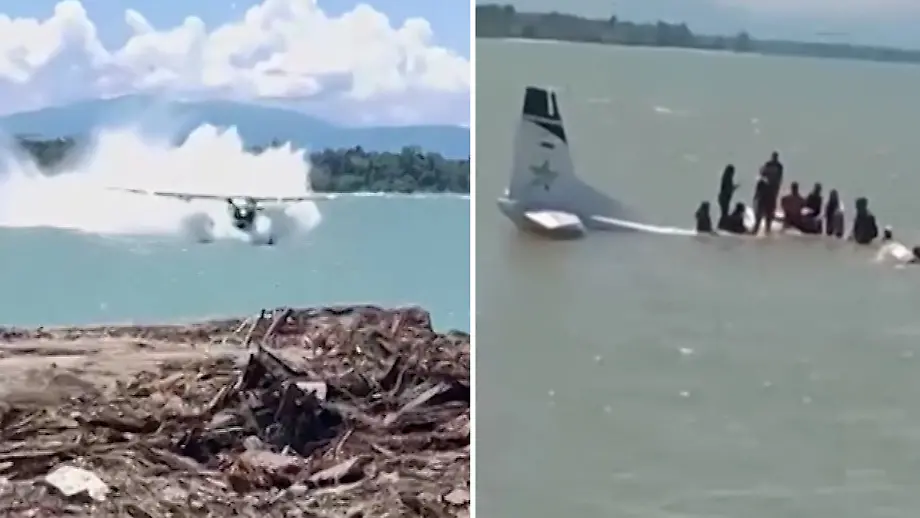 27.01.2026, 16:34 UhrKurz nach dem Abheben am Flughafen versagen die Triebwerke: Eine Maschine mit 15 Menschen an Bord muss in Indonesien im Meer notlanden. Die Insassen können sich auf den Rumpf retten - alle überleben.