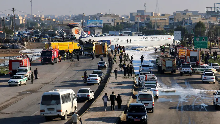 Bruchlandung im IranFlugzeug schießt über Runway hinaus auf Autobahn