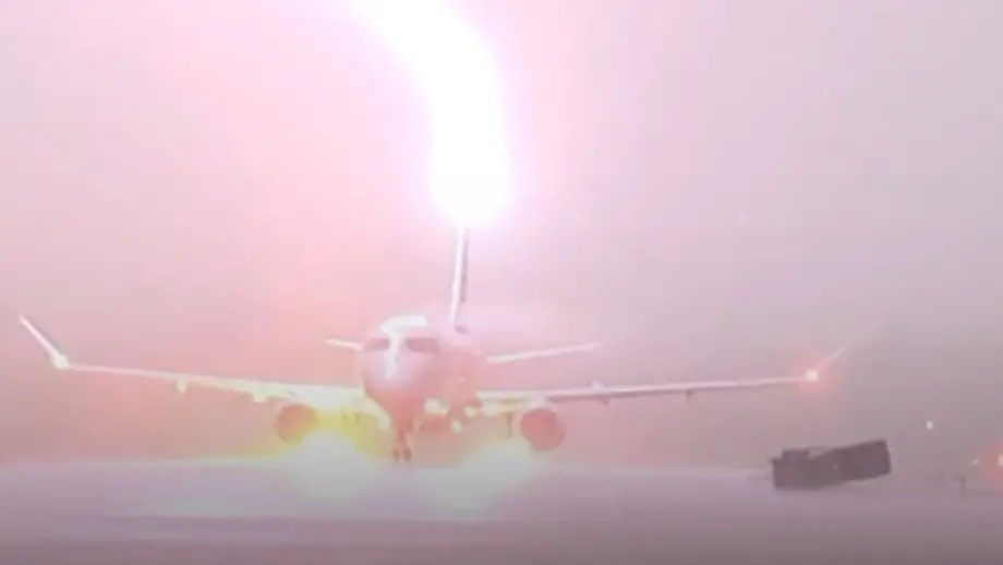 Embraer E175 meistert SturmlandungFlugzeug wird auf Rollfeld von Blitz getroffen