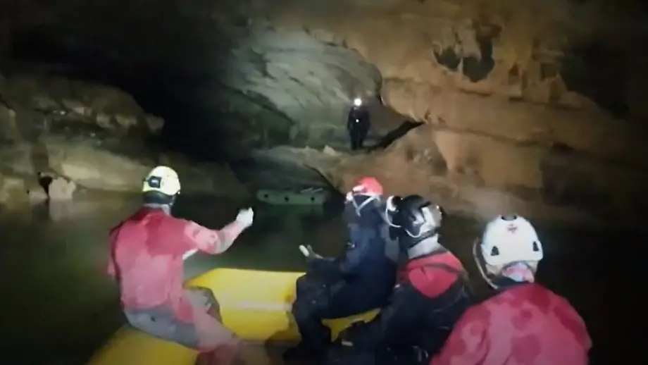 08.01.2024, 15:01 UhrEine dreiköpfige Familie lässt sich von zwei Tourguides durch eine Höhle in Slowenien führen. Doch von ihrer Erkundung kehren sie nicht zurück: Regenfälle fluten den Ausgang. Bis die Pegel wieder sinken, müssen die fünf Personen nun in der Höhle ausharren - und werden von Rettungstauchern versorgt.