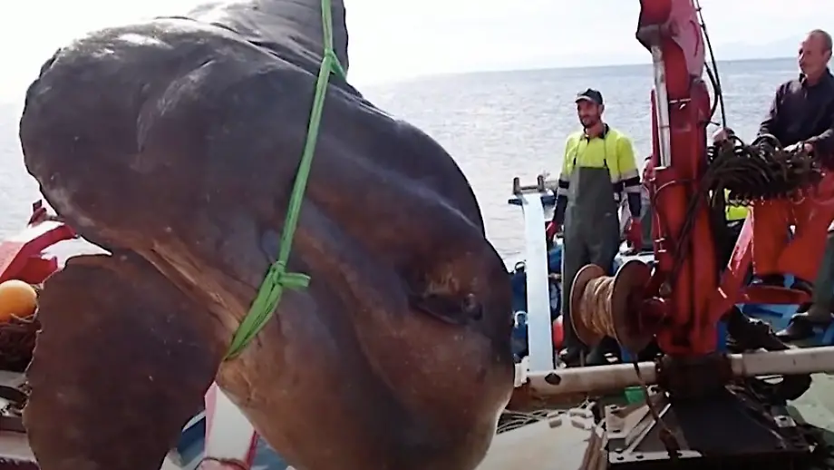 Vor Ceuta in Netz verheddertForscher retten gigantischen Mondfisch mit Kran
