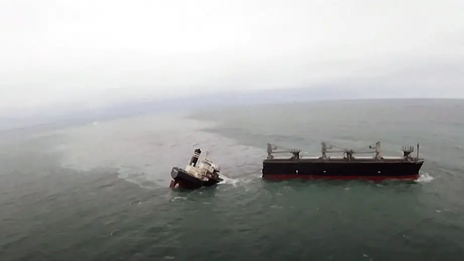 12.08.2021, 12:43 UhrVor der Küste der japanischen Insel Honshu läuft ein Holzfrachter auf Grund. Die Crew macht das große Schiff zwar erst wieder flott, dann aber bricht es mittendurch. Noch ist unklar, wie viel Öl bei dem Unfall ausgetreten ist.