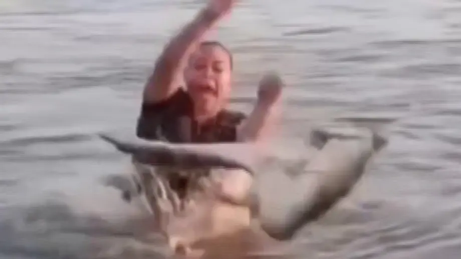 10.04.2026, 11:47 UhrEine Runde in der Lagune planschen und entspannen - dachte sich wohl eine junge Frau im Süden Mexikos. Bis sie etwas unter Wasser spürt: Als sie den vermeintlichen Ast aus dem Wasser heben will, bekommt sie stattdessen einen gewaltigen Schreck. Der "Ast" hat Zähne - und bewegt sich.