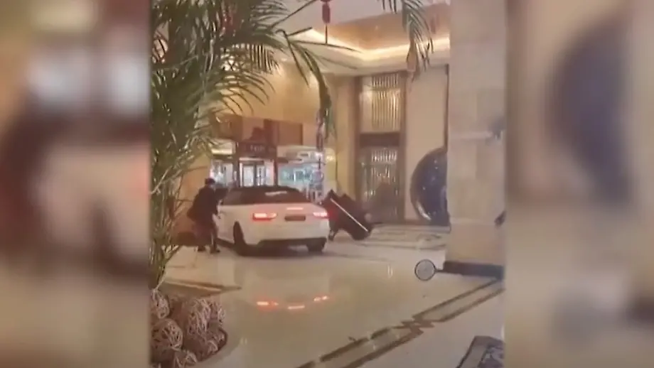 12.01.2023, 18:11 UhrNachdem ihm bei seinem Aufenthalt in einem Luxushotel offenbar sein Laptop abhandenkommt, verliert ein Mann in Shanghai die Beherrschung. Seine Wut über den Verlust kanalisiert der 28-Jährige, in dem er die Lobby des Hauses demoliert - mit seinem Auto.