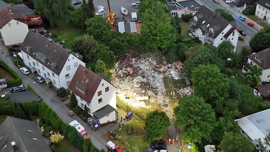 09.07.2022, 10:11 UhrFeuerwehr, Polizei und Spezialkräfte rücken in NRW zu einem dramatischen Großeinsatz aus: In einem Wohnhaus in Hemer explodiert offenbar ein Gastank im Untergeschoss, das gesamte Gebäude stürzt ein. Die Bewohner sind unter den Trümmern verschüttet, ein Opfer kann nur tot geborgen werden.