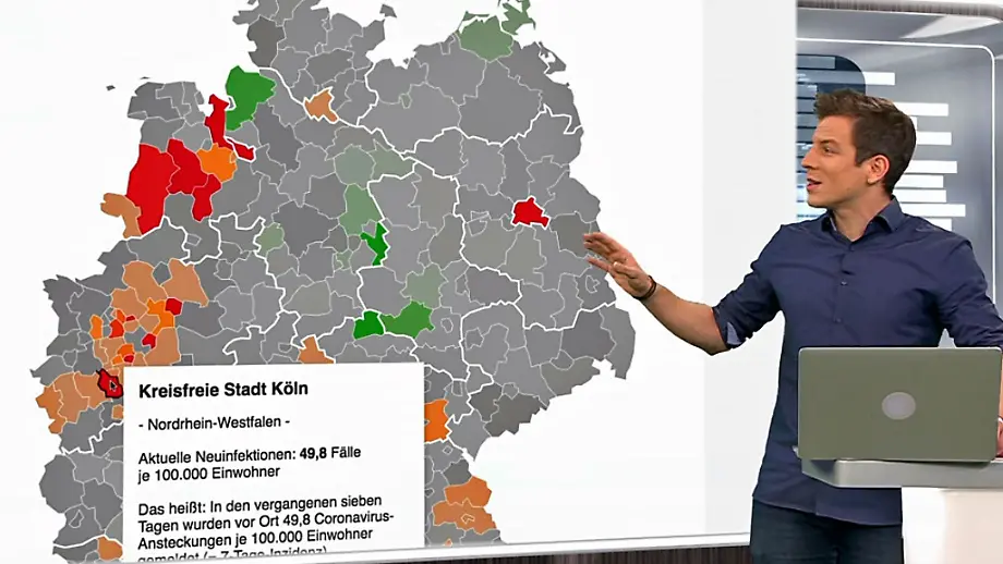 09.10.2020, 12:48 UhrWie hat sich die Zahl der täglichen Neuinfektionen entwickelt? Wo gibt es Infektionsherde? Mit aktuellen Fakten zum Infektionsgeschehen ordnet das ntv-Moderationsteam Daniel Schüler und Doro Steitz mit Epidemiologen Prof. Timo Ulrichs die Corona-Lage in Deutschland und der Welt ein.