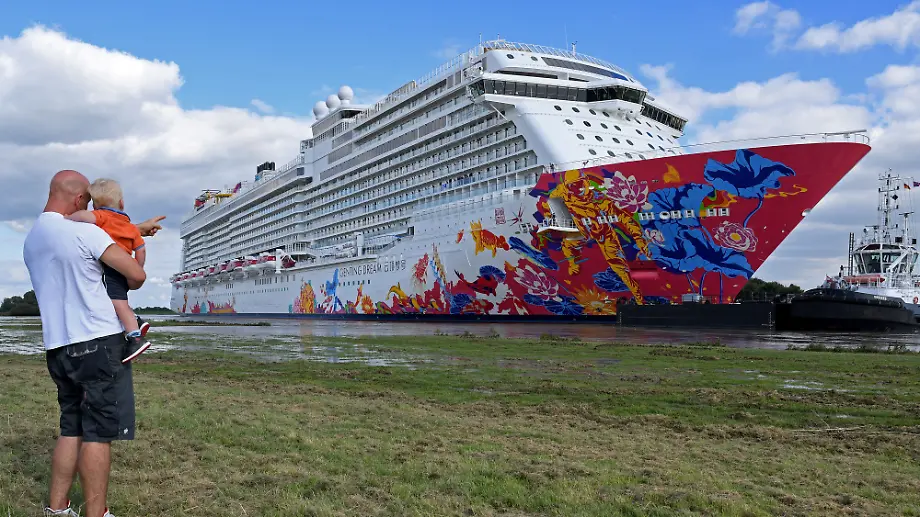 Bunter Riese auf der schmalen Ems"Genting Dream" nimmt Kurs auf die Nordsee