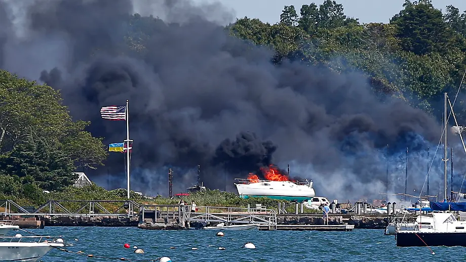 20.08.2022, 11:03 UhrIn einem Hafen im US-Bundesstaat Massachusetts bricht ein Großbrand aus. Die Flammen zerstören Häuser, Boote und Autos. Eine Anwohnerin berichtet von 50 Explosionen binnen einer Stunde. Als Brandursache wird die anhaltende Hitze in der Region vermutet.