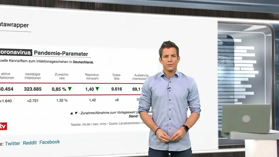 12.10.2020, 11:09 UhrWie hat sich das Infektionsgeschehen entwickelt? Mit einem Rückblick auf die Woche ordnet das ntv-Moderationsteam Daniel Schüler und Katrin Neumann zusammen mit dem Epidemiologen Prof. Timo Ulrichs die Corona-Lage in Europa ein. Fragen können Zuschauer an "Coronafragen@ntv.de" schicken.