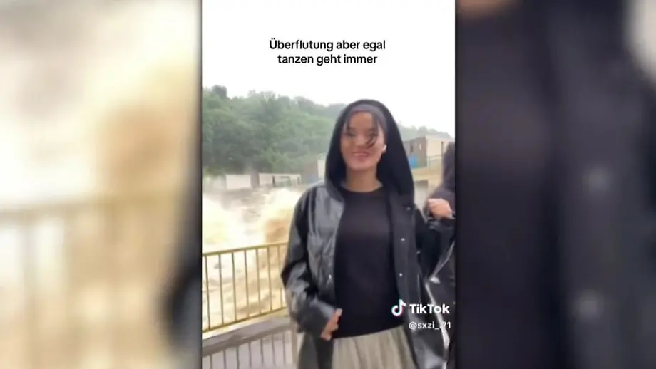 Anwalt warnt vor KonsequenzenHochwasser-Gaffer bringen sich für TikTok in Gefahr