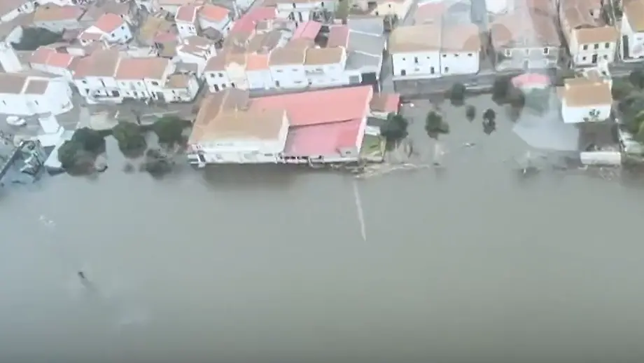 13.02.2026, 20:05 UhrDie Stadt Coimbra in Portugal ist besonders vom Hochwasser betroffen. Aufnahmen der portugiesischen Luftwaffe von oben machen das deutlich. Nachdem Teile einer nahegelegenen Autobahn infolge der Wassermassen wegsacken, bereiten die Behörden rund 9.000 Menschen auf eine mögliche Evakuierung vor.